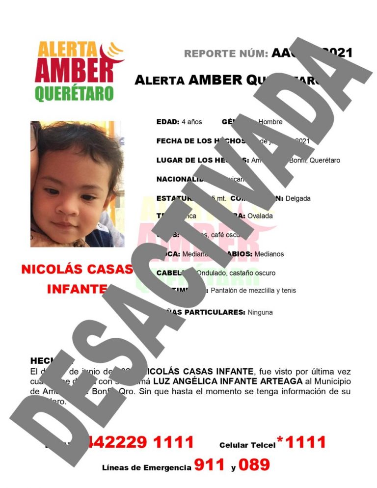 Desactivan Alerta AMBER en Querétaro; continúa búsqueda del menor Nicolás Casas