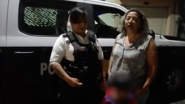 Policías del municipio de Querétaro brindan apoyo a niño extraviado y lo reúnen con su familia