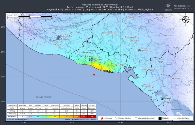 Sismo de magnitud 6.3 estremece El Salvador, Guatemala y Nicaragua