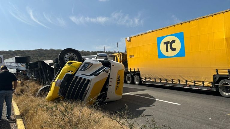 Tráiler vuelca en el libramiento Surponiente y bloquea vialidad por dos horas