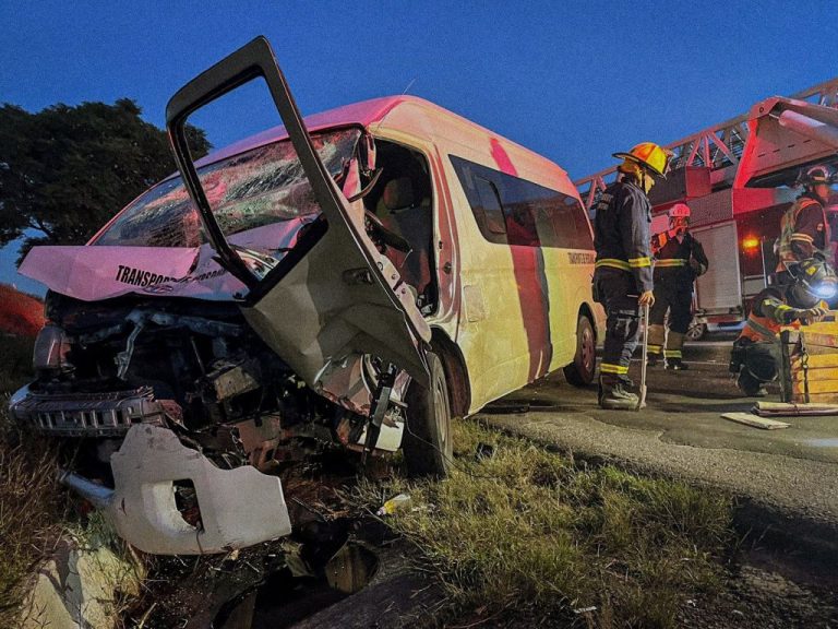 Choca camioneta de transporte de personal contra tráiler en la autopista México-Querétaro