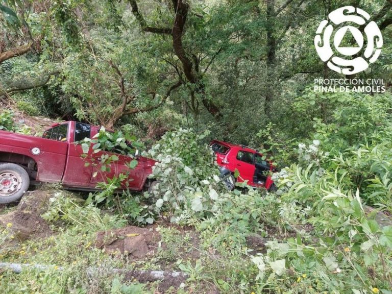 Dos camionetas salen del camino en Pinal de Amoles
