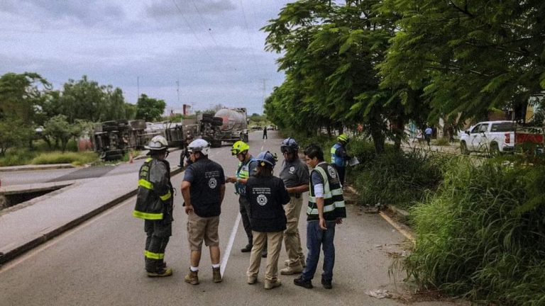 Vuelca remolque cisterna con combustible en la colonia Las Azucenas