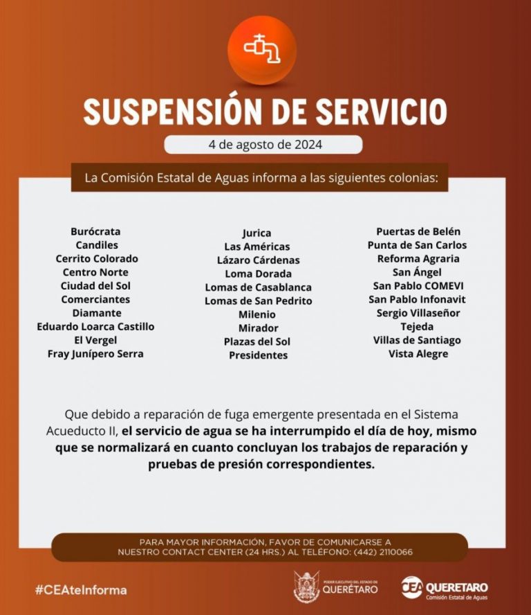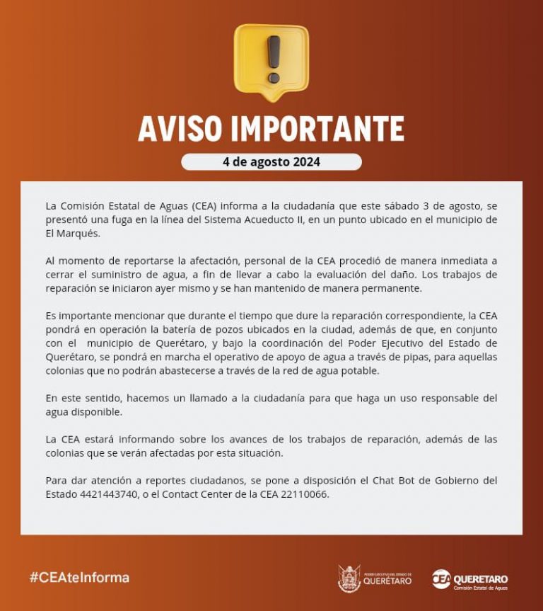 CEA suspende servicio en varias colonias por fuga en el Acueducto II