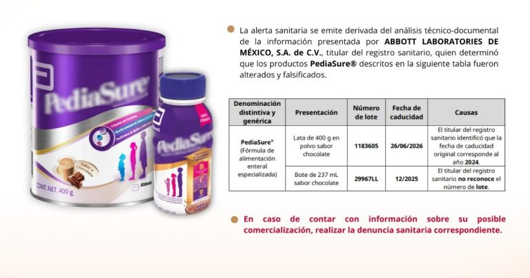 Emite COFEPRIS alerta sanitaria por falsificación y alteración de productos PediaSure
