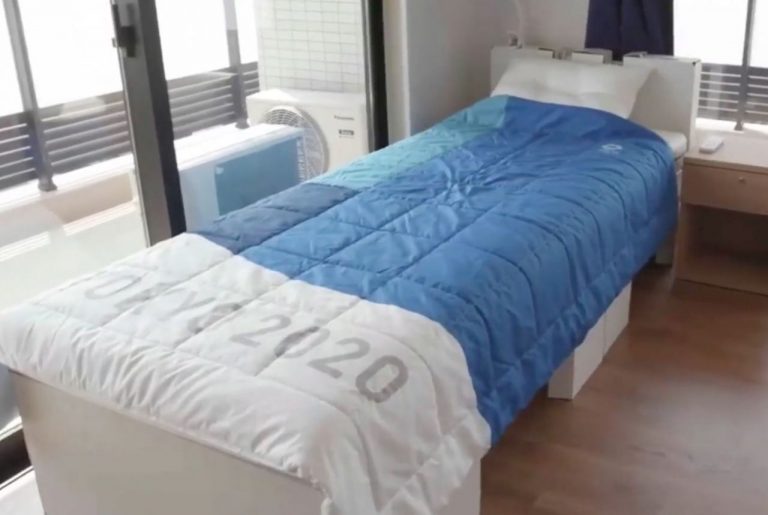 Camas de cartón y antiarrumacos en Olimpiadas de Tokio