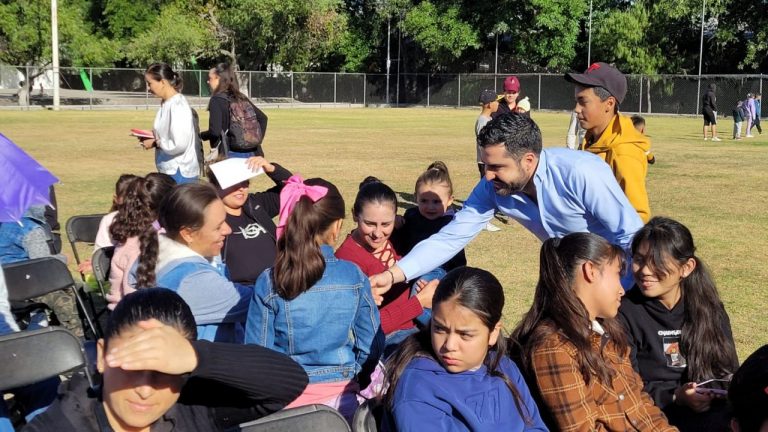 Entrega municipio de Querétaro cancha de fútbol 5 en primaria de Buenavista