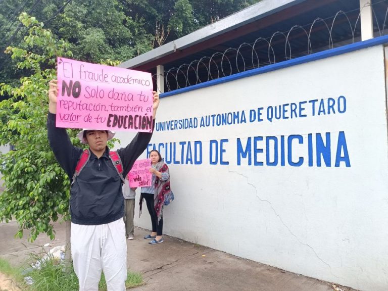 Protestan aspirantes de medicina de la UAQ por admisión de sospechosos de fraude