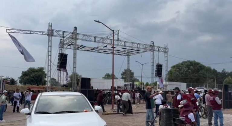 Viento derriba estructura en cierre de campaña de candidato a edil de Xonacatlán