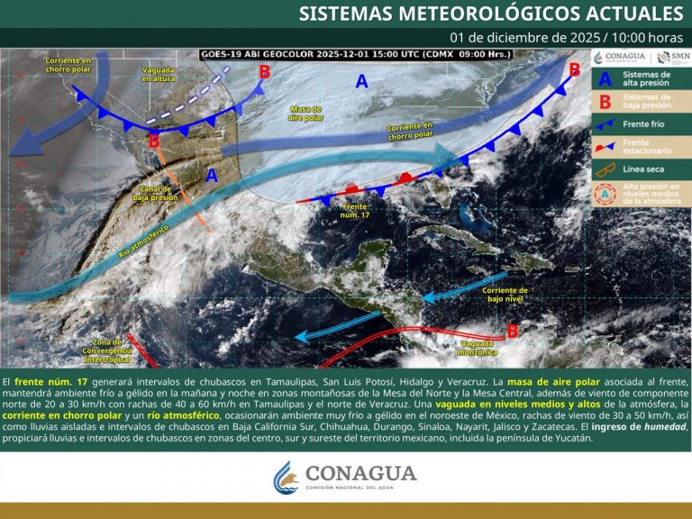 Frente frío 17 y masa de aire polar provocarán lluvias, heladas y fuertes vientos