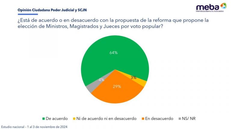 Encuesta reporta apoyo del 64% de la población a elección del Poder Judicial