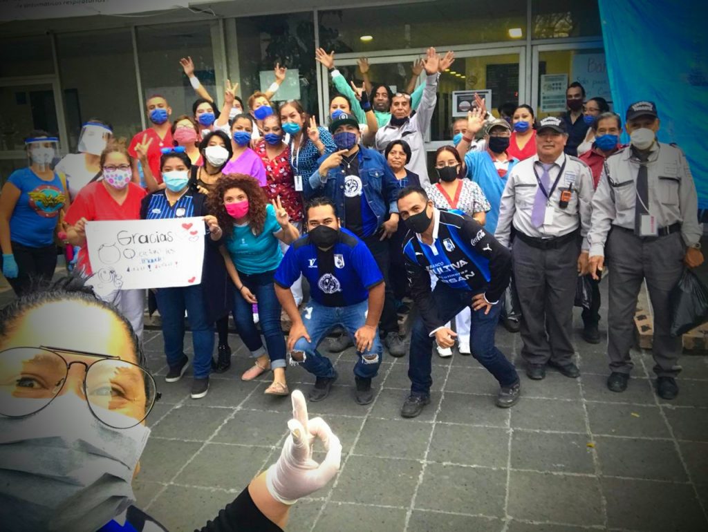 El día de hoy, aficionados del equipo Querétaro llegaron hasta la avenida Tecnológico para reconocer a estos héroes sin capa que están dando la batalla por la pandemia del Covid-19 en la ciudad de Querétaro. Los diversos aficionados que se reúnen periódicamente cada 15 días cuando su equipo juega, ahora se organizaron en conjunto con el grupo de animación Resistencia Albiazul del Norte que agrupa a cientos de aficionados en todos la Unión Americana, para ofrecer esta tarde el agradecimiento y el reconocimiento por su loable labor.