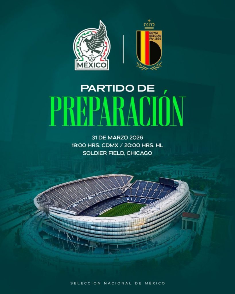 Días después de la reapertura del Azteca, el Tri viajará a Chicago para enfrentar a Bélgica el martes 31 de marzo a las 19:00 horas en el Soldier Field.