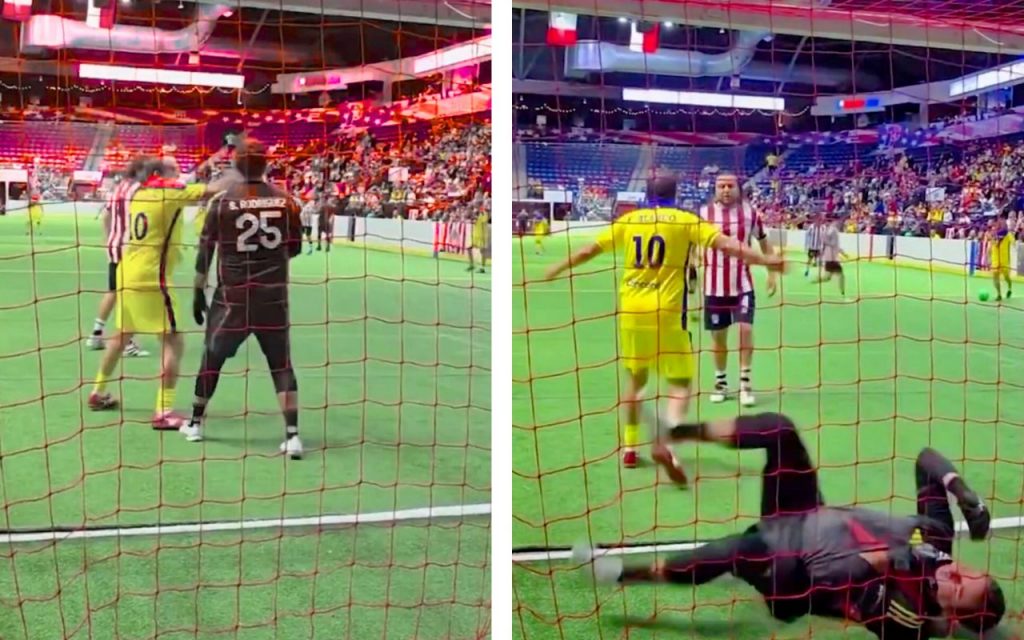 La acción se originó cuando Rodríguez empujó levemente por la espalda al histórico ’10’ azulcrema, quien reaccionó de inmediato girando y soltando un manotazo que derribó al exguardameta rojiblanco, dicha escena quedó grabada y se volvió viral en cuestión de minutos.