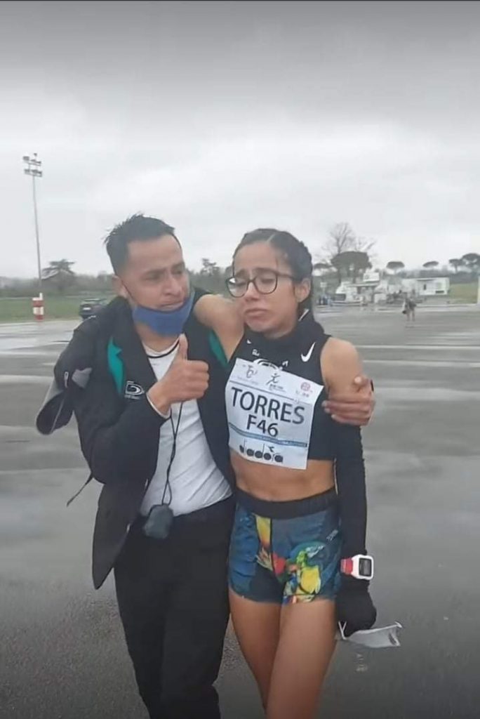 La queretana Torres, quien dejó las carreras de cinco mil metros para dedicarse al maratón, cruzó la meta con lágrimas en los ojos y un abrazo a su entrenador Enrique Hernández, quien le dijo a su discípula “No todo son resultados, somos humanos y eso vale mucho más”, según lo dio a conocer en sus redes sociales.