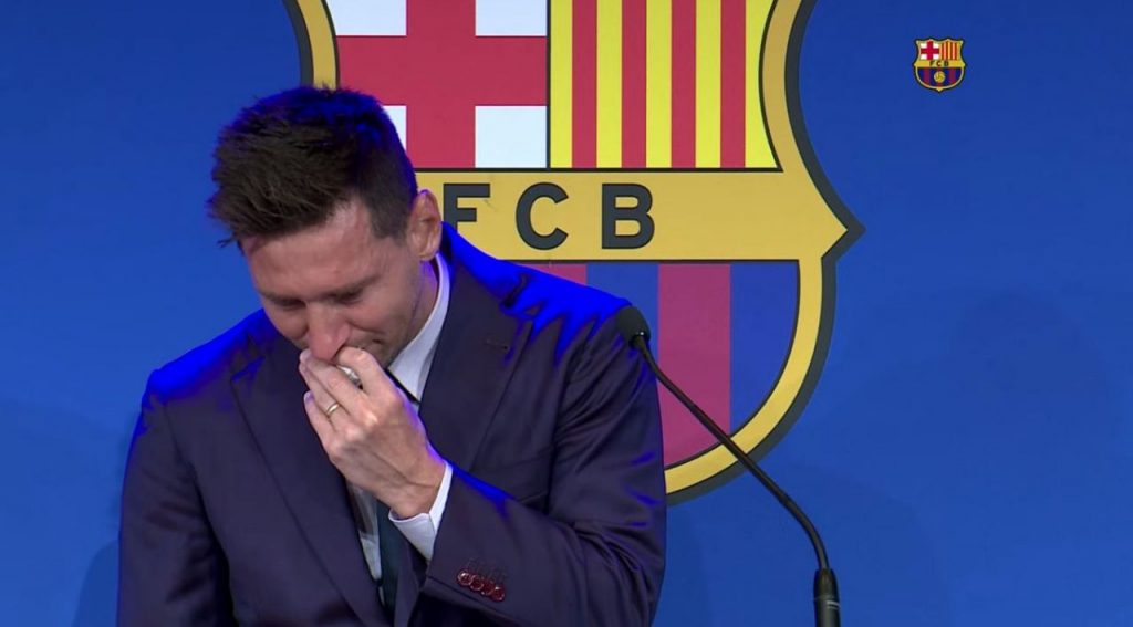 Conmovido hasta las lágrimas y en medio de una ovación de varios minutos, Lionel Messi se despidió -durante una rueda de prensa- del Futbol Club Barcelona.