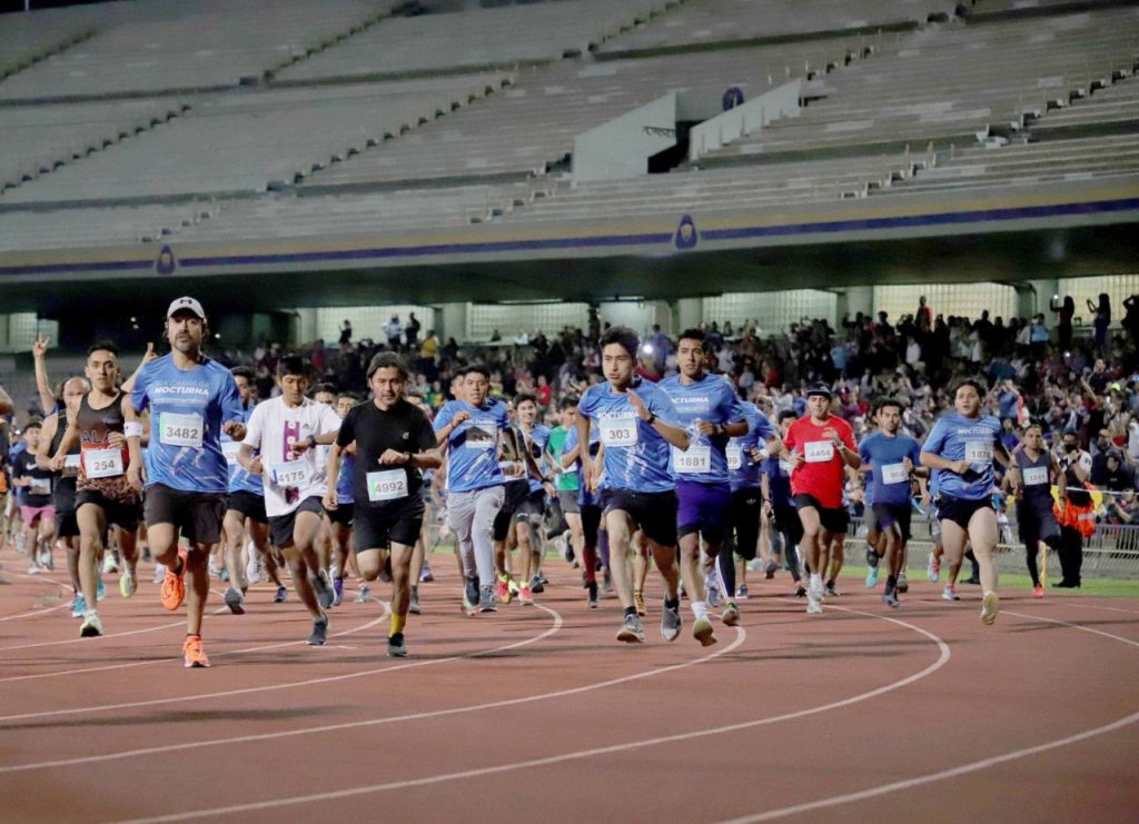 Codo a codo, zancada a zancada, con la mirada fija en la meta y entregando su resto de energía. Así fue la entrada a la pista de atletismo del Estadio Olímpico Universitario, del primero y segundo lugar absolutos de la XIX Carrera nocturna 2023, competencia que se definió por un par de segundos. Christian Castro Ramírez, egresado de la Facultad de Derecho, y Jorge Ismael Osorio Herrera, alumno de la Facultad de Economía, atraparon las miradas de los asistentes por unos momentos, hasta que el esfuerzo se decidió por un ganador: el portador de la camiseta azul que representó la celebración del Día Mundial del Agua (22 de marzo) en esta competencia.