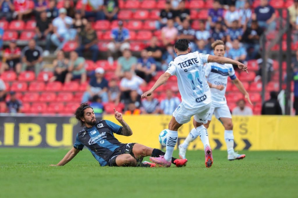Querétaro no lograba hilvanar tres toques seguidos, ya que la zaga regiomontana recuperaba rápido la posesión.