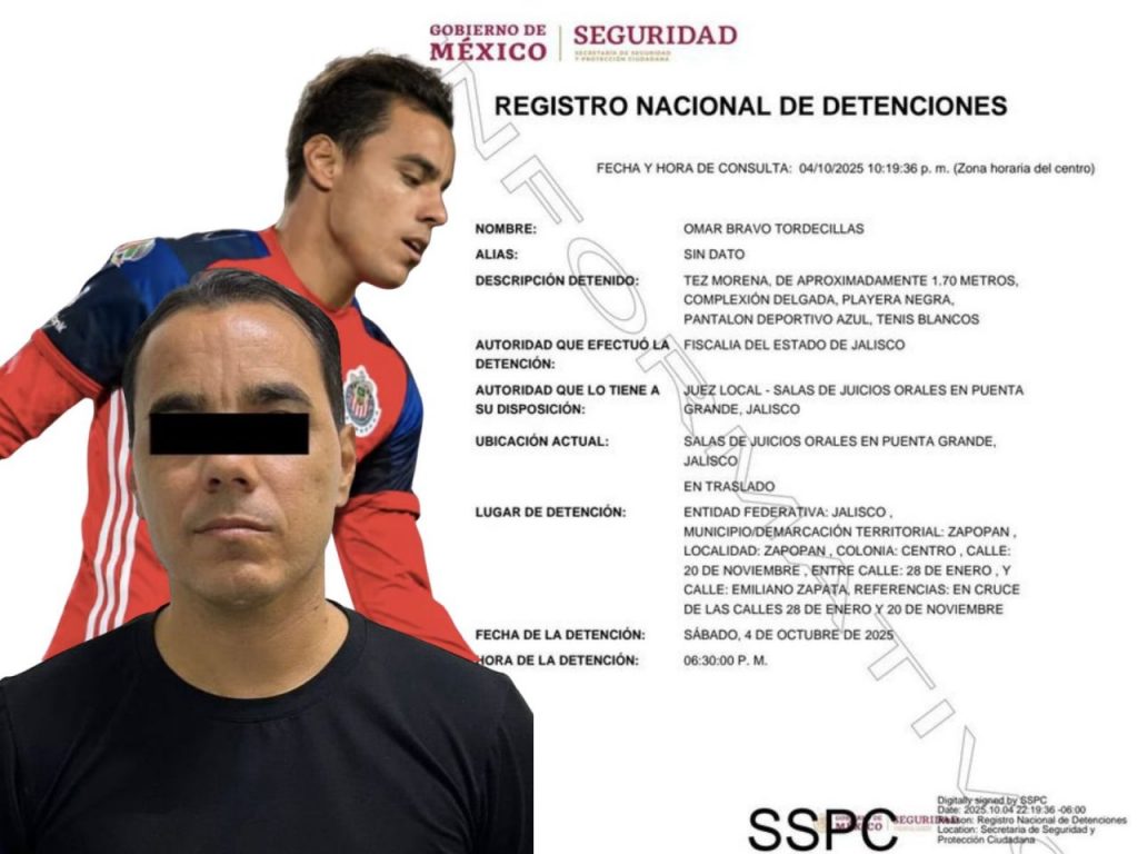 Omar Bravo, exdelantero de Chivas y máximo goleador histórico del club, fue detenido este sábado por presunto abuso sexual infantil agravado, confirmó la Fiscalía del Estado de Jalisco, tras cumplimentar una orden de aprehensión.