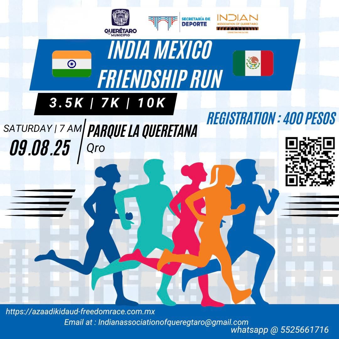 Querétaro albergará el próximo sábado 9 de agosto la Carrera de la Amistad India-México 2025, un evento que busca promover una vida más saludable entre los ciudadanos a través del simple acto de caminar o correr.