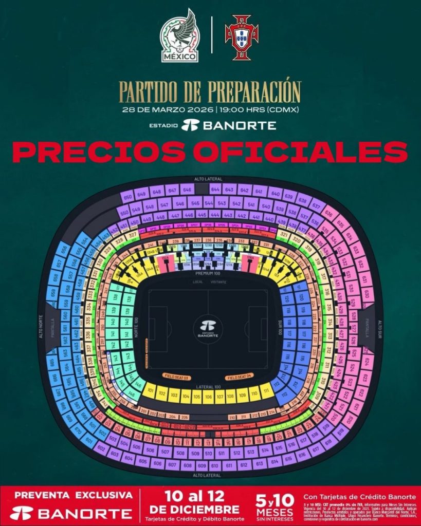Lista oficial de precios del México vs Portugal
