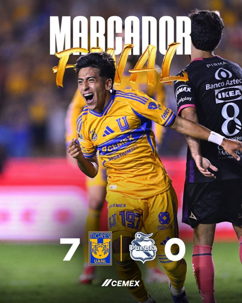 Tigres aplasta 7-0 al Puebla en noche de golazos