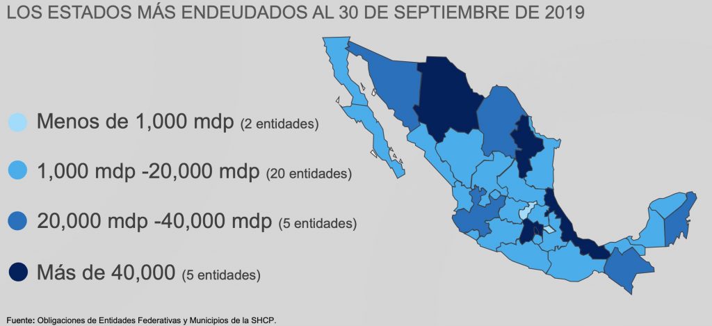 Hay cinco estados cuyo saldo de la deuda supera los 40 mil millones de pesos: Chihuahua, Veracruz, Estado de México, Nuevo León y Ciudad de México.