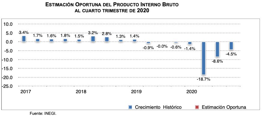 Sin embargo, comparado con el mismo trimestre pero del 2019, las actividades económicas tuvieron una contracción de -4.5%.