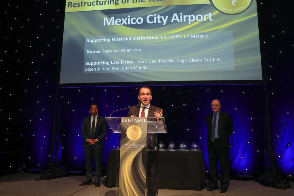 La recompra de bonos del Nuevo Aeropuerto Internacional de México fue premiada como la mejor reestructura del año, “la cual fue una operación extraordinariamente compleja por 1,800 millones de dólares en la recompra de bonos del NAIM”, destacó el secretario de Hacienda, Arturo Herrera.