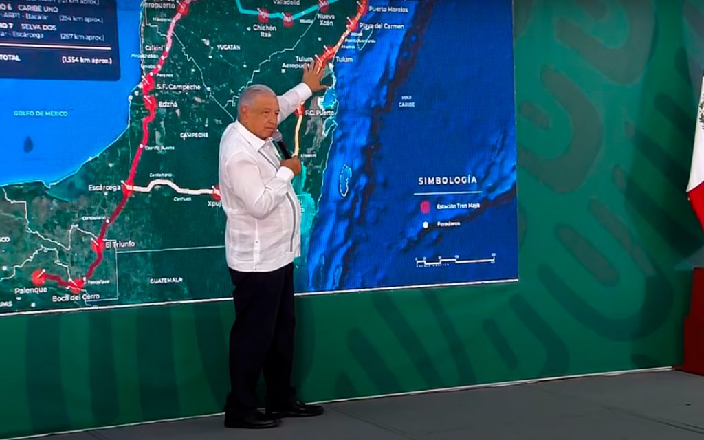 En conferencia matutina desde Quintana Roo, el mandatario federal denunció que en la entrada a Mérida desde Campeche, varias empresas acapararon las tierras por especulación y buscan sacar ventaja del proyecto.