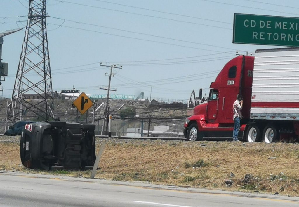 La tarde de este lunes en el kilómetro 198 de la carretera Qro-Mex, con dirección a aquella ciudad, un vehículo compacto volcó debido al exceso de velocidad.