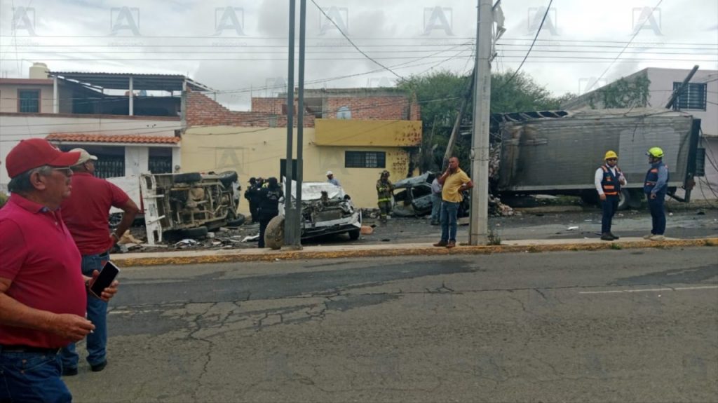 Un camión de carga provocó la mañana de este miércoles una carambola sobre la avenida México, en San Juan del Río, dejando once vehículos dañados, entre ellos cuatro motocicletas y una taxi van, sin que se registraran personas lesionadas.