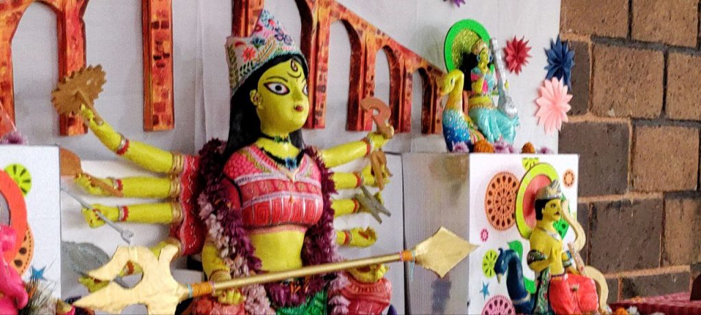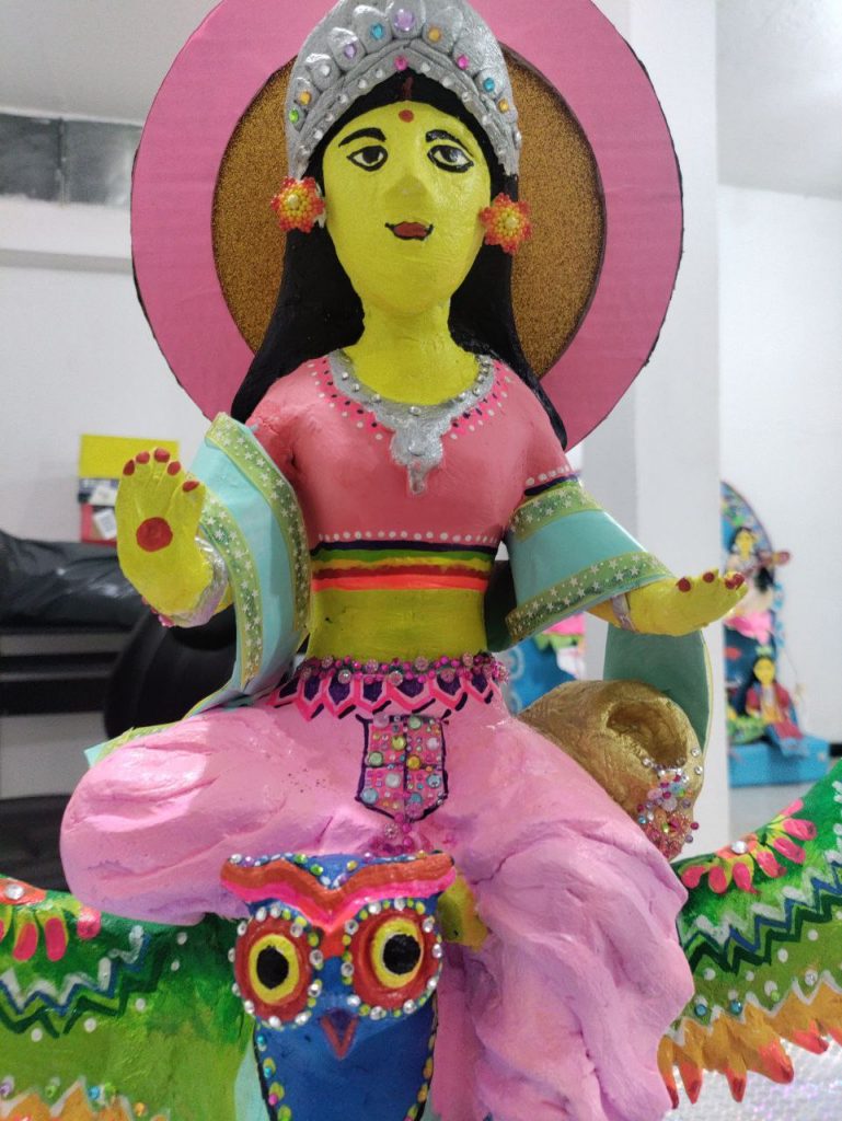 La diosa Durga, que tiene 10 brazos 8 de ellos dirigidos a los puntos cardinales y los otros dos apuntando hacia arriba y hacia abajo, fue expuesta en un altar que combinó elementos propios de las culturas India y Mexicana.