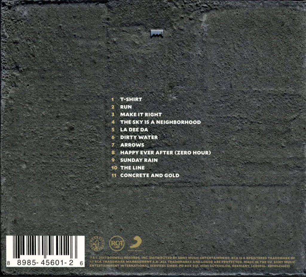 Son 11 canciones en 48 minutos las que disfrutarás en Concrete and Gold, producción que cumple 5 años de haberse dado a conocer y una de las grandes obras de Foo Fighters: Dave Grohl (voz y guitarra), Chris Shiflett (guitarra), Pat Smear (guitarra), Nate Mendel (bajo), Taylor Hawkins (batería y voz) y Rami Jaffee (teclados).