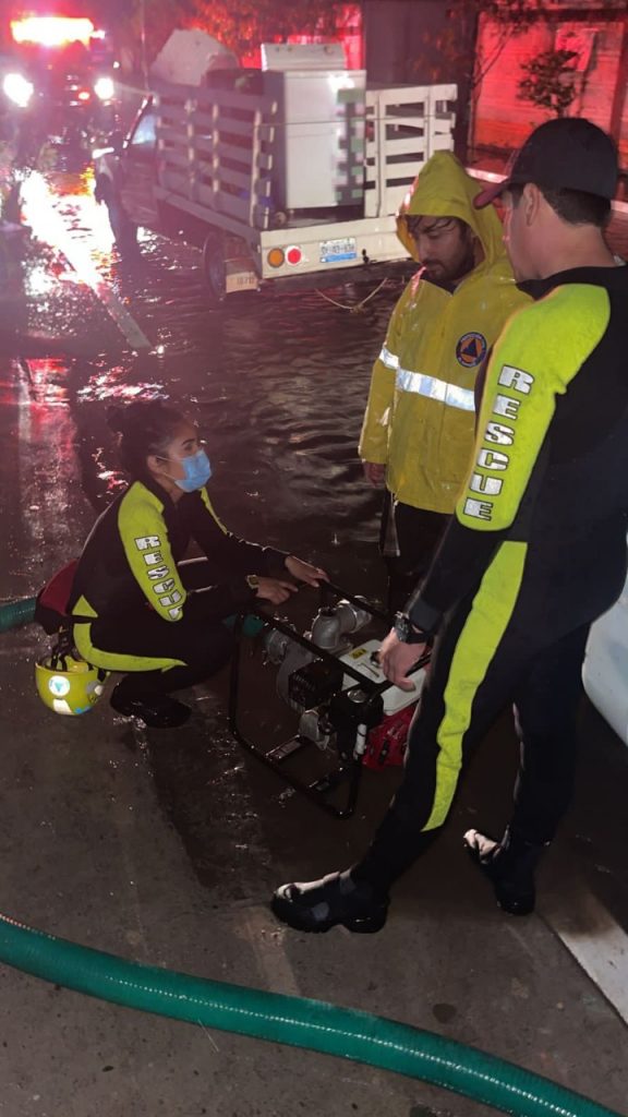 Durante el trabajo realizado, se atendieron 13 requerimientos de extracción de agua, y se llevó a cabo la colocación de costaleras y limpieza al interior de las casas, mismas que registraron hasta un tirante de 40 centímetros.