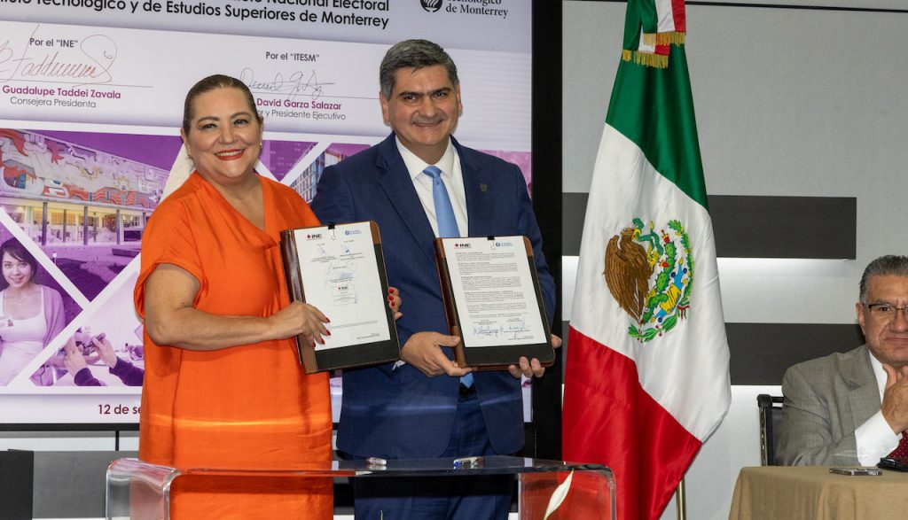 El Instituto Nacional Electoral (INE) y el Tecnológico de Monterrey, firmaron un convenio de colaboración con el objetivo de promover iniciativas relacionadas con dos aspectos fundamentales para la transformación del país: el desarrollo democrático y el desarrollo institucional.