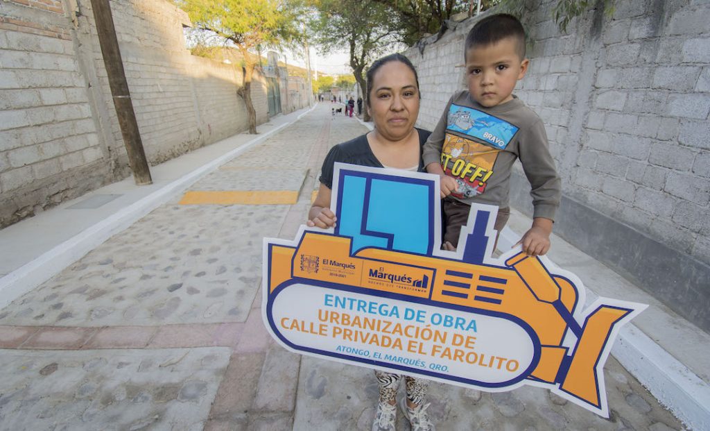 El delegado municipal de Chichimequillas, Jaime Olvera Chico y la beneficiaria Serena Rincón del Agua, agradecieron a nombre de los habitantes de la Privada Farolito la entrega de la obra de urbanización; en el evento también estuvieron la regidora Elisa Rendón Guerrero, el síndico Ramiro Ramírez Ramírez, ambos integrantes de la Comisión de Obras y Servicios Públicos; así como el subdelegado de Atongo, Guillermo Hernández Díaz.
