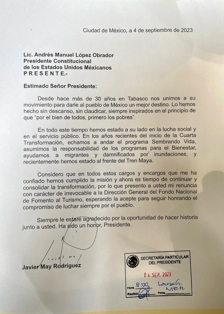 Javier May renuncia a Fonatur; va por candidatura de Morena al gobierno de Tabasco