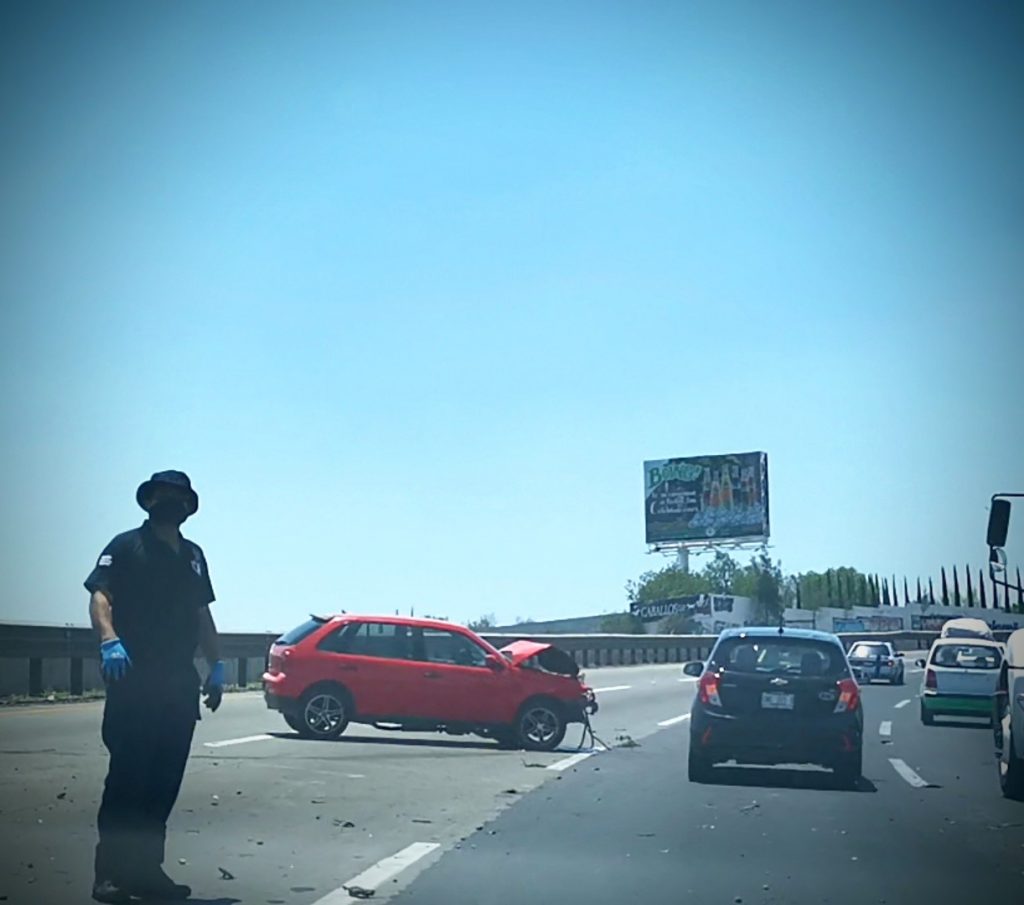 Un descuido al volante provocó que joven impactar su auto contra el muro de contención en la carretera Querétaro México a la altura del km 207 kilómetros antes de llegar al monumento a Conín.