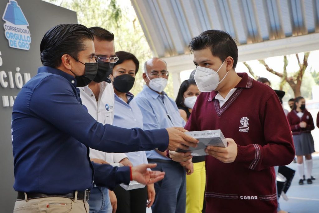 “Felicidades jóvenes. Aprovechen estas tabletas que nuestro amigo Mauricio Kuri les envía. Aprovéchenlo para su educación. Hoy en Corregidora seguimos trabajando para cada uno de ustedes y no tengan duda que, de esta manera la educación en Corregidora es y seguirá siendo el gran orgullo de Querétaro”, expresó el edil al tiempo que destacó el nivel académico que tiene el municipio y que está por encima de la media nacional y estatal.