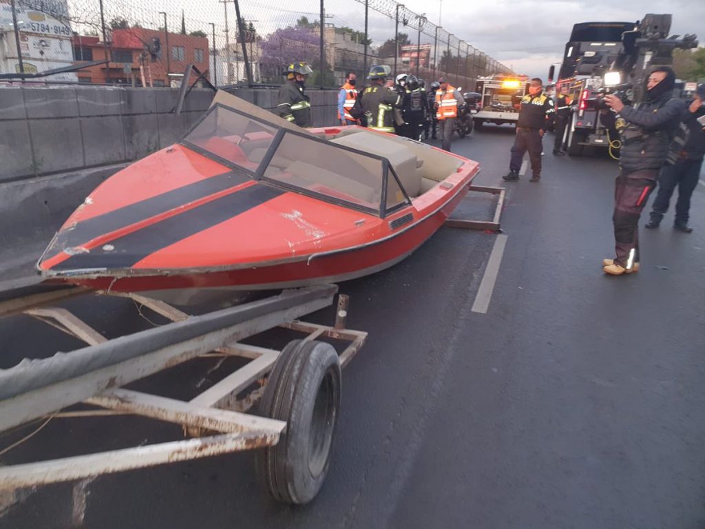 Personal de Bomberos de la Ciudad de México procedió a bajar la lancha y colocarla en un remolque para su retiro, en tanto que el Sistema de Transporte Colectivo Metro señaló que debido al percance, los trenes redujeron su velocidad, afectando el intervalo en el servicio en la Línea B.