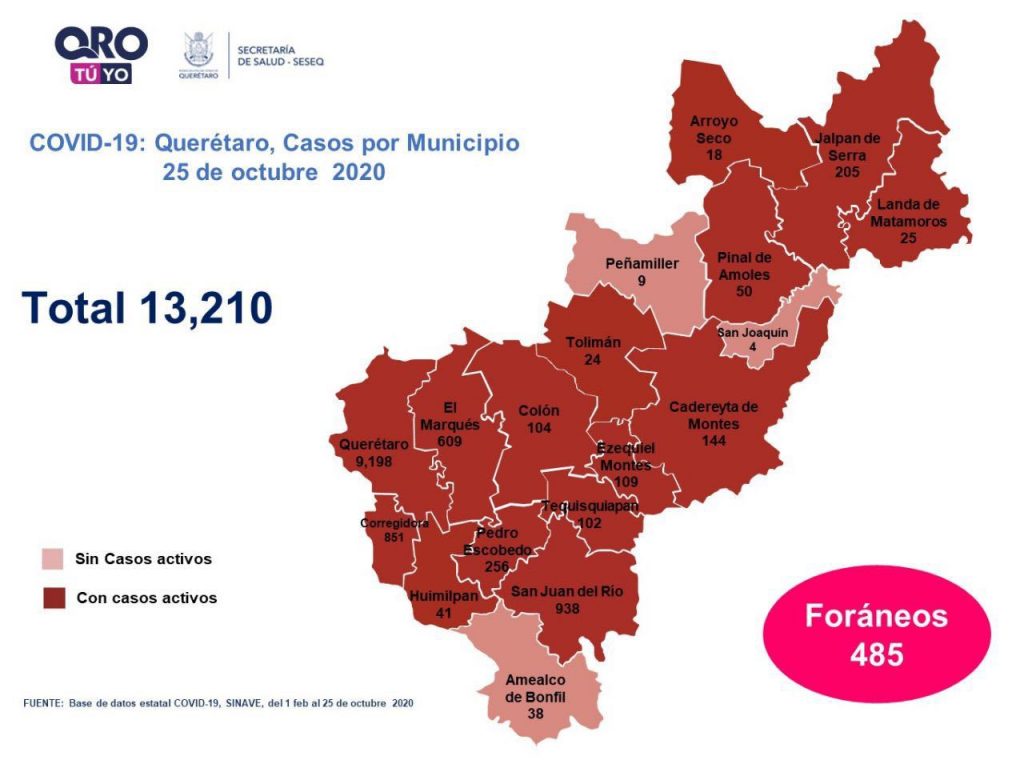 Los contagios por Covid-19 en Querétaro alcanzan los 13,210