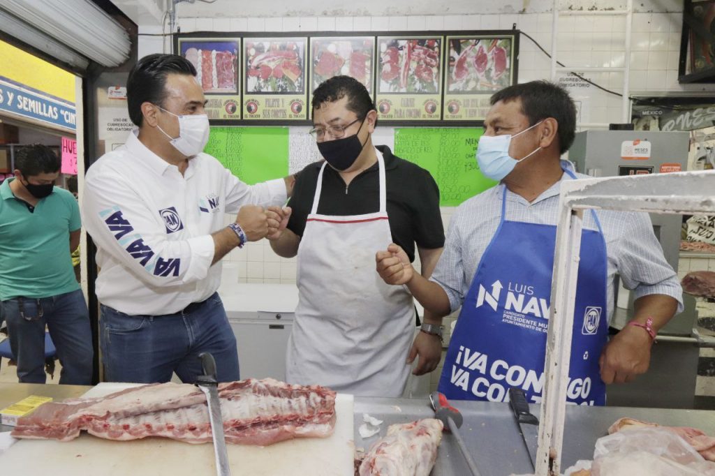 Durante la primera visita de Luis Nava al Mercado de la Cruz en lo que va de la campaña, se contó además con la presencia de Ignacio Loyola Vera, candidato a Diputado Federal por el Distrito 3; Felipe Fernando Macías, candidato a Diputado Federal del Distrito IV; y Ana Paola López Birlain, candidata a Diputada Local del Distrito 4.