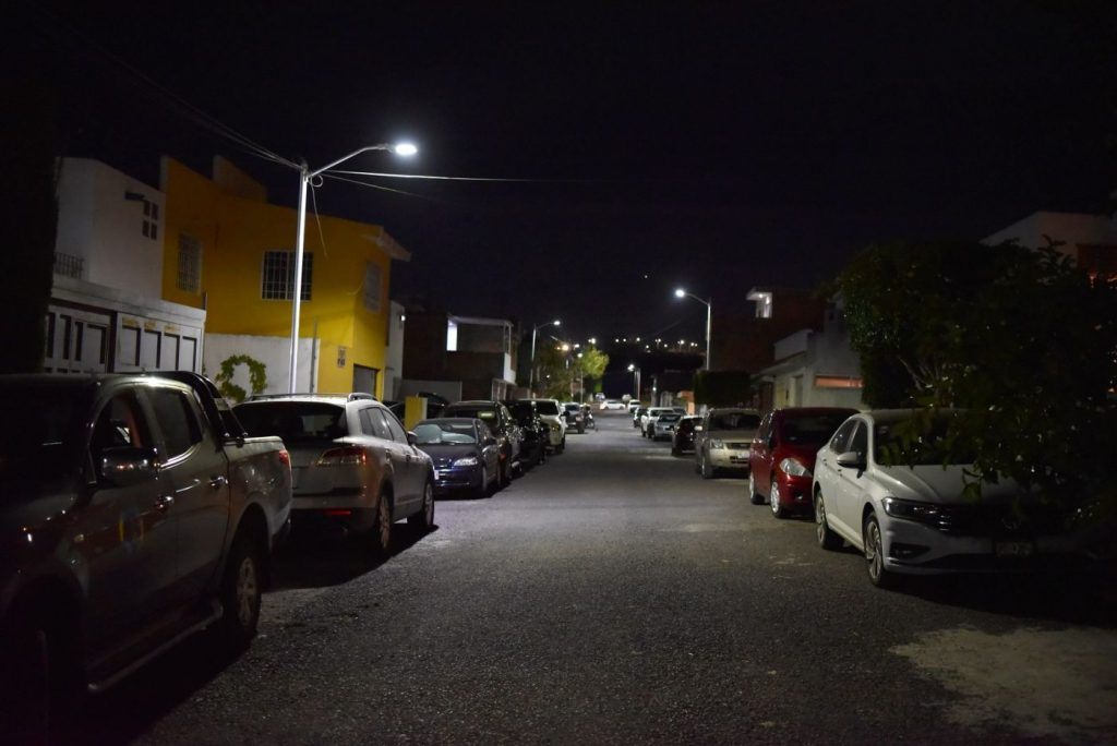 Se colocaron luminarias en 20 colonias con 590 puntos de luz; 19 comunidades con 1,167 puntos, en los dos panteones con 30 puntos de luz, en 15 vialidades, nueve parques, cinco mega postes: en Tejeda, Libramiento y entrada de Constituyentes a La Negreta; y en total fueron 4,647 luminarias con un monto de inversión por casi 100 millones de pesos.