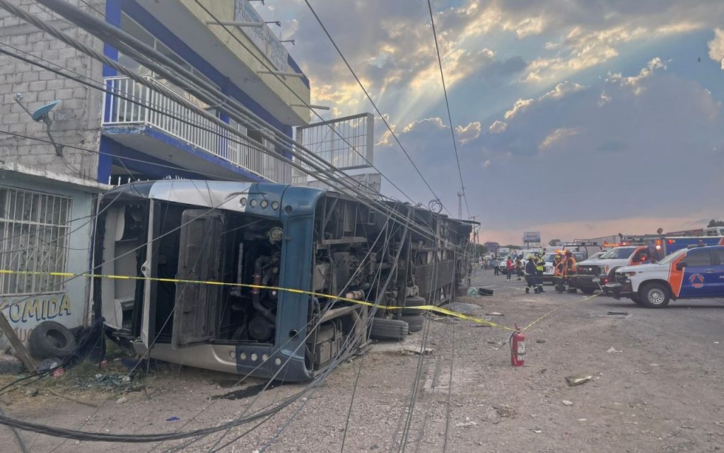 Mueren tres personas por volcadura de autobús en Querétaro