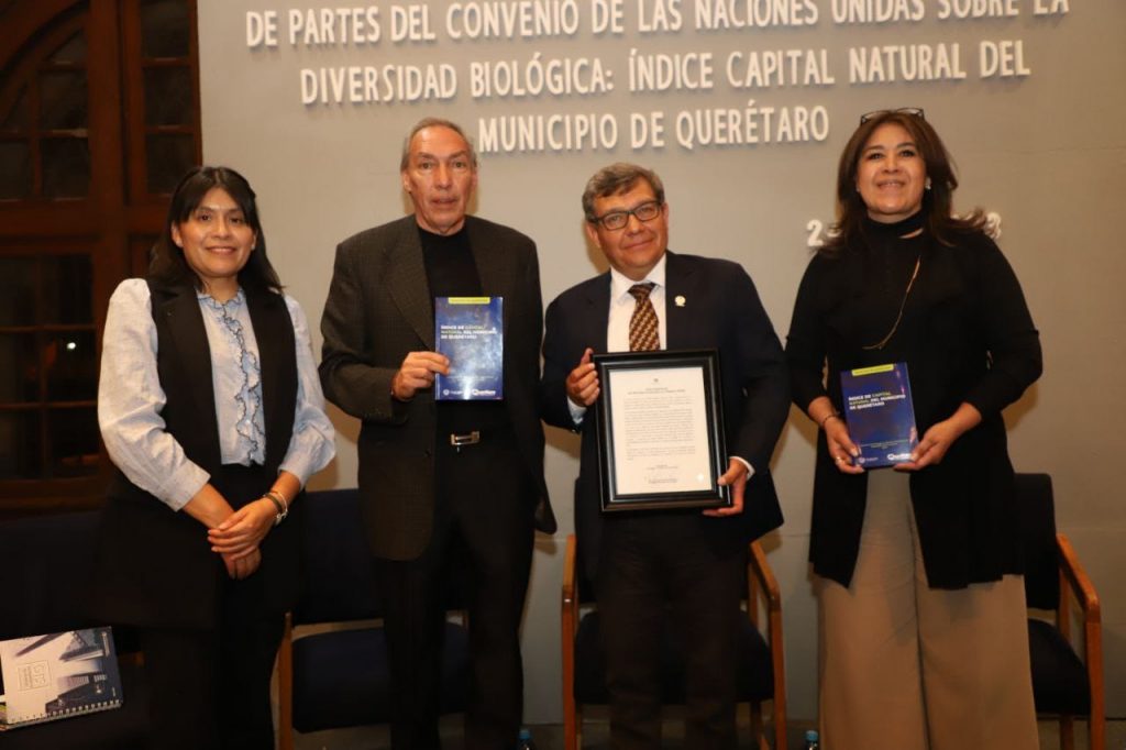 El Director del Instituto de Ecología y Cambio Climático, Alejandro Angulo Carrera, junto con la Regidora del H. Ayuntamiento e integrante de la Comisión de Desarrollo Urbano y Ecología, Adriana Fuentes Cortés, fueron los encargados de entregar el dicumento al Director General de Cooperación Internacional e Implementación de la Comisión Nacional para el Conocimiento y Uso de la Biodiversidad (CONABIO) y representante de México en la COP15, Hesiquio Benítez Díaz, quien celebró que el Municipio de Querétaro esté tomando acciones y creando políticas públicas para revertir la pérdida de diversidad biológica en cumplimiento de la meta 30×30.
