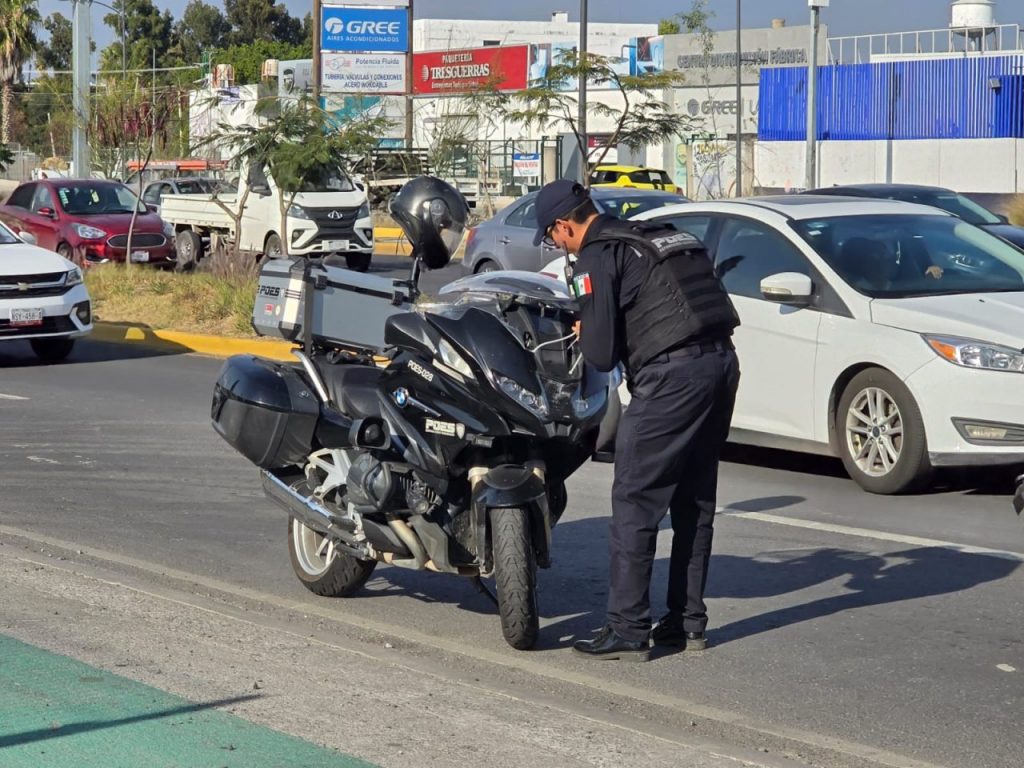 Un elemento de la Policía Estatal resultó lesionado este lunes por la tarde luego de impactar su motopatrulla contra un tráiler mientras circulaba sobre la avenida 5 de Febrero, en dirección a la carretera México–Querétaro.