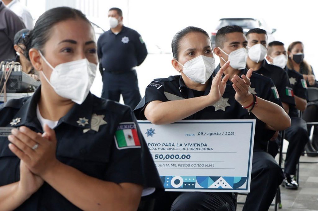 En reconocimiento al buen desempeño que llevan a cabo para garantizar la seguridad de la ciudadanía, Roberto Sosa Pichardo, presidente municipal de Corregidora, entregó estímulos para la vivienda, por 50 mil pesos, a 50 policías de la Secretaría de Seguridad Pública Municipal.