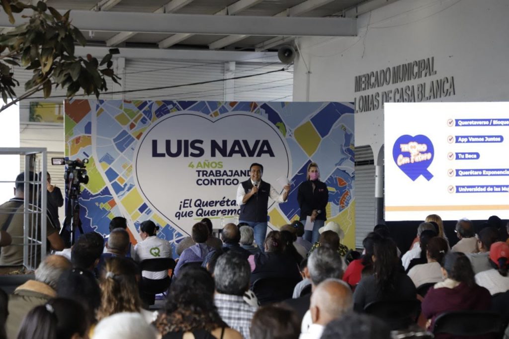 El presidente municipal de Querétaro, Luis Nava, en compañía de su esposa y Presidenta del Patronato del Sistema Municipal DIF, Arahí Domínguez, platicó con las y los vecinos de la Delegación Josefa Vergara y Hernández sobre las acciones y programas que a cuatro años de trabajo por la capital, buscan mejorar a calidad de vida y ven por la tranquilidad de las y los queretanos.