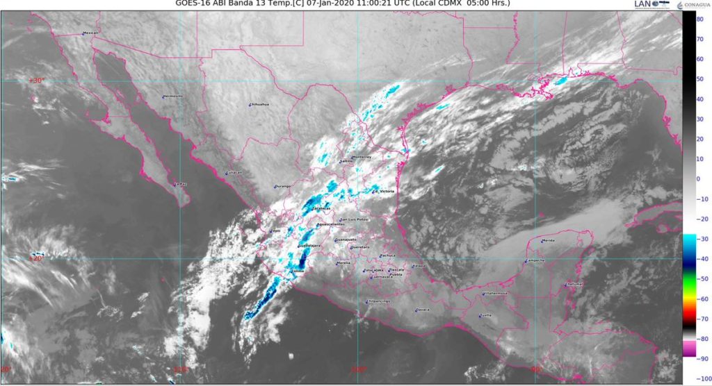 Continuará el ambiente frío en la mayor parte de México. Se estiman temperaturas de -10 a – 5 grados Celsius en sierras de Chihuahua y Coahuila, de -5 a 0 grados Celsius en zonas montañosas de Sonora, Coahuila, Zacatecas, Aguascalientes, San Luis Potosí, Jalisco, Guanajuato, Querétaro, Hidalgo, Puebla, Tlaxcala y Estado de México, y de 0 a 5 grados Celsius en zonas serranas de Tamaulipas, Michoacán, Ciudad de México, Veracruz y Oaxaca. En las zonas con temperaturas de -10 a 5 grados Celsius se prevén heladas.